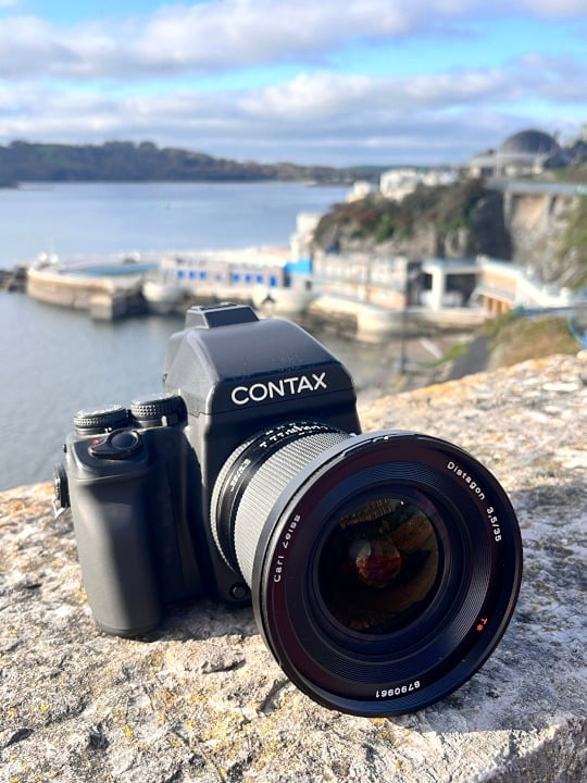 Taking the Contax 645 out for a walk through Plymouth is an experience that immediately reminds you this is no ordinary camera. Paired with the Carl Zeiss Distagon T* 35mm f3.5 super wide lens and the prism finder, it felt every bit of the professional medium format system it was designed to be....