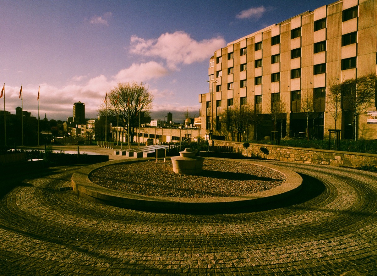 Taking the Contax 645 out for a walk through Plymouth is an experience that immediately reminds you this is no ordinary camera. Paired with the Carl Zeiss Distagon T* 35mm f3.5 super wide lens and the prism finder, it felt every bit of the professional medium format system it was designed to be. Starting along Armada Way and heading toward the Hoe, the camera quickly made its presence known, not just visually, but physically. It’s a fairly heavy and rather large setup, far from pocket sized or convenient for casual carry. This is a camera you commit to bringing along!